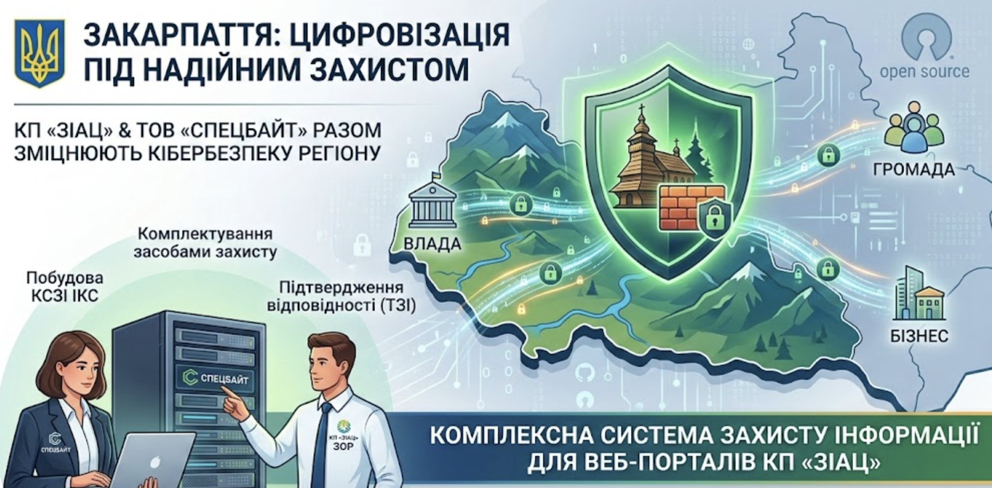 Закарпаття продовжує активно розвивати цифрові сервіси та відкриті дані, що потребує надійного фундаменту у сфері кібербезпеки. Команда «Спецбайт» завершила важливий етап робіт із побудови комплексної системи захисту інформації (КСЗІ) для ключових веб-ресурсів регіону, якими опікується Комунальне підприємство «Закарпатський інформаційно-аналітичний центр» (КП «ЗІАЦ») Закарпатської обласної ради.